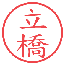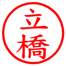 [朱肉の色]を選び、入力窓に“立橋”と入力して[生成]ボタンを押すと、印影が更新され、リンクから電子印鑑(デジタル印影)がダウンロードできます。 電子印鑑「立橋」の作り方文字表示が変なときや、文字バランスが悪いときは[字形切替]のチェックボックスでON/OFFを切り替え[生成]しなおしてください。 生成される画像は通常の印影「立橋.png」と、にじみを表現した少し太めの印影「立橋B.png」の背面透過PNG形式2種と、鮮明なPDF形式の印影「立橋.pdf」の計3種類です。 朱肉の微妙な色の違いを7色で表現しました。デフォルト(左端)は、JISが定めた朱肉の色のマンセル値(7.5R 5/14)をRGB値(217,66,54)に変換したものになっています。 「電子透かし」にチェックを入れて[生成]ボタンを押すと、タイムスタンプを透かしとして埋め込んだセキュアな電子印鑑が作れます。詳細は別ページの「電子透かしとタイムスタンプ」でご覧ください。  立橋さんの日付印が作れます。「日付スタンプメーカー」は、社内向けの書類に利用されることの多い日付印(データ印)が無料で作れるWebアプリケーションです。中段に日付が入り、上段と下段は、ともに8文字まで文字が入ります。 ![]()  古代文字で落款印が作れます。「落款スタンプメーカー」で作品を引き立たせる落款印が作れます。
