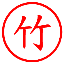 [朱肉の色]を選び、入力窓に“竹”と入力して[生成]ボタンを押すと、印影が更新され、リンクから電子印鑑(デジタル印影)がダウンロードできます。 電子印鑑「竹」の作り方文字表示が変なときや、文字バランスが悪いときは[字形切替]のチェックボックスでON/OFFを切り替え[生成]しなおしてください。 生成される画像は通常の印影「竹.png」と、にじみを表現した少し太めの印影「竹B.png」の背面透過PNG形式2種と、鮮明なPDF形式の印影「竹.pdf」の計3種類です。 朱肉の微妙な色の違いを7色で表現しました。デフォルト(左端)は、JISが定めた朱肉の色のマンセル値(7.5R 5/14)をRGB値(217,66,54)に変換したものになっています。 「電子透かし」にチェックを入れて[生成]ボタンを押すと、タイムスタンプを電子透かしとして埋め込んだセキュアな電子印鑑が作れます。詳細は別ページの「タイムスタンプと電子透かし」でご覧ください。 竹さんの日付印が作れます。「日付スタンプメーカー」は、社内向けの書類に利用されることの多い日付印(データ印)が無料で作れるWebアプリケーションです。中段に日付が入り、上段と下段は、ともに8文字まで文字が入ります。 ![]() 古代文字で落款印が作れます。「落款スタンプメーカー」で作品を引き立たせる落款印が作れます。