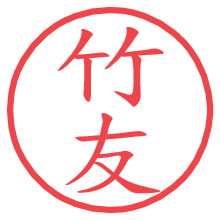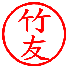[朱肉の色]を選び、入力窓に“竹友”と入力して[生成]ボタンを押すと、印影が更新され、リンクから電子印鑑(デジタル印影)がダウンロードできます。 電子印鑑「竹友」の作り方文字表示が変なときや、文字バランスが悪いときは[字形切替]のチェックボックスでON/OFFを切り替え[生成]しなおしてください。 生成される画像は通常の印影「竹友.png」と、にじみを表現した少し太めの印影「竹友B.png」の背面透過PNG形式2種と、鮮明なPDF形式の印影「竹友.pdf」の計3種類です。 朱肉の微妙な色の違いを7色で表現しました。デフォルト(左端)は、JISが定めた朱肉の色のマンセル値(7.5R 5/14)をRGB値(217,66,54)に変換したものになっています。 「電子透かし」にチェックを入れて[生成]ボタンを押すと、タイムスタンプを電子透かしとして埋め込んだセキュアな電子印鑑が作れます。詳細は別ページの「タイムスタンプと電子透かし」でご覧ください。 竹友さんの日付印が作れます。「日付スタンプメーカー」は、社内向けの書類に利用されることの多い日付印(データ印)が無料で作れるWebアプリケーションです。中段に日付が入り、上段と下段は、ともに8文字まで文字が入ります。 ![]() 古代文字で落款印が作れます。「落款スタンプメーカー」で作品を引き立たせる落款印が作れます。