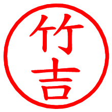 [朱肉の色]を選び、入力窓に“竹吉”と入力して[生成]ボタンを押すと、印影が更新され、リンクから電子印鑑(デジタル印影)がダウンロードできます。 電子印鑑「竹吉」の作り方文字表示が変なときや、文字バランスが悪いときは[字形切替]のチェックボックスでON/OFFを切り替え[生成]しなおしてください。 生成される画像は通常の印影「竹吉.png」と、にじみを表現した少し太めの印影「竹吉B.png」の背面透過PNG形式2種と、鮮明なPDF形式の印影「竹吉.pdf」の計3種類です。 朱肉の微妙な色の違いを7色で表現しました。デフォルト(左端)は、JISが定めた朱肉の色のマンセル値(7.5R 5/14)をRGB値(217,66,54)に変換したものになっています。 「電子透かし」にチェックを入れて[生成]ボタンを押すと、タイムスタンプを電子透かしとして埋め込んだセキュアな電子印鑑が作れます。詳細は別ページの「タイムスタンプと電子透かし」でご覧ください。 竹吉さんの日付印が作れます。「日付スタンプメーカー」は、社内向けの書類に利用されることの多い日付印(データ印)が無料で作れるWebアプリケーションです。中段に日付が入り、上段と下段は、ともに8文字まで文字が入ります。 ![]() 古代文字で落款印が作れます。「落款スタンプメーカー」で作品を引き立たせる落款印が作れます。
