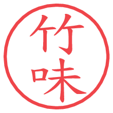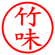 [朱肉の色]を選び、入力窓に“竹味”と入力して[生成]ボタンを押すと、印影が更新され、リンクから電子印鑑(デジタル印影)がダウンロードできます。 電子印鑑「竹味」の作り方文字表示が変なときや、文字バランスが悪いときは[字形切替]のチェックボックスでON/OFFを切り替え[生成]しなおしてください。 生成される画像は通常の印影「竹味.png」と、にじみを表現した少し太めの印影「竹味B.png」の背面透過PNG形式2種と、鮮明なPDF形式の印影「竹味.pdf」の計3種類です。 朱肉の微妙な色の違いを7色で表現しました。デフォルト(左端)は、JISが定めた朱肉の色のマンセル値(7.5R 5/14)をRGB値(217,66,54)に変換したものになっています。 「電子透かし」にチェックを入れて[生成]ボタンを押すと、タイムスタンプを電子透かしとして埋め込んだセキュアな電子印鑑が作れます。詳細は別ページの「タイムスタンプと電子透かし」でご覧ください。 竹味さんの日付印が作れます。「日付スタンプメーカー」は、社内向けの書類に利用されることの多い日付印(データ印)が無料で作れるWebアプリケーションです。中段に日付が入り、上段と下段は、ともに8文字まで文字が入ります。 ![]() 古代文字で落款印が作れます。「落款スタンプメーカー」で作品を引き立たせる落款印が作れます。