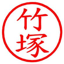 [朱肉の色]を選び、入力窓に“竹塚”と入力して[生成]ボタンを押すと、印影が更新され、リンクから電子印鑑(デジタル印影)がダウンロードできます。 電子印鑑「竹塚」の作り方文字表示が変なときや、文字バランスが悪いときは[字形切替]のチェックボックスでON/OFFを切り替え[生成]しなおしてください。 生成される画像は通常の印影「竹塚.png」と、にじみを表現した少し太めの印影「竹塚B.png」の背面透過PNG形式2種と、鮮明なPDF形式の印影「竹塚.pdf」の計3種類です。 朱肉の微妙な色の違いを7色で表現しました。デフォルト(左端)は、JISが定めた朱肉の色のマンセル値(7.5R 5/14)をRGB値(217,66,54)に変換したものになっています。 「電子透かし」にチェックを入れて[生成]ボタンを押すと、タイムスタンプを透かしとして埋め込んだセキュアな電子印鑑が作れます。詳細は別ページの「電子透かしとタイムスタンプ」でご覧ください。 竹塚さんの日付印が作れます。「日付スタンプメーカー」は、社内向けの書類に利用されることの多い日付印(データ印)が無料で作れるWebアプリケーションです。中段に日付が入り、上段と下段は、ともに8文字まで文字が入ります。 ![]() 古代文字で落款印が作れます。「落款スタンプメーカー」で作品を引き立たせる落款印が作れます。