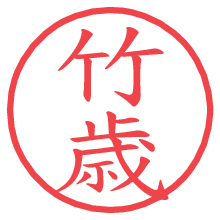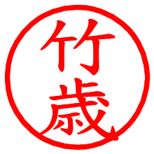 [朱肉の色]を選び、入力窓に“竹歳”と入力して[生成]ボタンを押すと、印影が更新され、リンクから電子印鑑(デジタル印影)がダウンロードできます。 電子印鑑「竹歳」の作り方文字表示が変なときや、文字バランスが悪いときは[字形切替]のチェックボックスでON/OFFを切り替え[生成]しなおしてください。 生成される画像は通常の印影「竹歳.png」と、にじみを表現した少し太めの印影「竹歳B.png」の背面透過PNG形式2種と、鮮明なPDF形式の印影「竹歳.pdf」の計3種類です。 朱肉の微妙な色の違いを7色で表現しました。デフォルト(左端)は、JISが定めた朱肉の色のマンセル値(7.5R 5/14)をRGB値(217,66,54)に変換したものになっています。 「電子透かし」にチェックを入れて[生成]ボタンを押すと、タイムスタンプを電子透かしとして埋め込んだセキュアな電子印鑑が作れます。詳細は別ページの「タイムスタンプと電子透かし」でご覧ください。 竹歳さんの日付印が作れます。「日付スタンプメーカー」は、社内向けの書類に利用されることの多い日付印(データ印)が無料で作れるWebアプリケーションです。中段に日付が入り、上段と下段は、ともに8文字まで文字が入ります。 ![]() 古代文字で落款印が作れます。「落款スタンプメーカー」で作品を引き立たせる落款印が作れます。