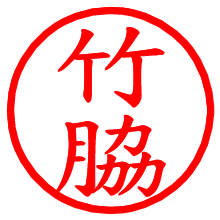 [朱肉の色]を選び、入力窓に“竹脇”と入力して[生成]ボタンを押すと、印影が更新され、リンクから電子印鑑(デジタル印影)がダウンロードできます。 電子印鑑「竹脇」の作り方文字表示が変なときや、文字バランスが悪いときは[字形切替]のチェックボックスでON/OFFを切り替え[生成]しなおしてください。 生成される画像は通常の印影「竹脇.png」と、にじみを表現した少し太めの印影「竹脇B.png」の背面透過PNG形式2種と、鮮明なPDF形式の印影「竹脇.pdf」の計3種類です。 朱肉の微妙な色の違いを7色で表現しました。デフォルト(左端)は、JISが定めた朱肉の色のマンセル値(7.5R 5/14)をRGB値(217,66,54)に変換したものになっています。 「電子透かし」にチェックを入れて[生成]ボタンを押すと、タイムスタンプを電子透かしとして埋め込んだセキュアな電子印鑑が作れます。詳細は別ページの「タイムスタンプと電子透かし」でご覧ください。 竹脇さんの日付印が作れます。「日付スタンプメーカー」は、社内向けの書類に利用されることの多い日付印(データ印)が無料で作れるWebアプリケーションです。中段に日付が入り、上段と下段は、ともに8文字まで文字が入ります。 ![]() 古代文字で落款印が作れます。「落款スタンプメーカー」で作品を引き立たせる落款印が作れます。