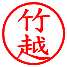 [朱肉の色]を選び、入力窓に“竹越”と入力して[生成]ボタンを押すと、印影が更新され、リンクから電子印鑑(デジタル印影)がダウンロードできます。 電子印鑑「竹越」の作り方文字表示が変なときや、文字バランスが悪いときは[字形切替]のチェックボックスでON/OFFを切り替え[生成]しなおしてください。 生成される画像は通常の印影「竹越.png」と、にじみを表現した少し太めの印影「竹越B.png」の背面透過PNG形式2種と、鮮明なPDF形式の印影「竹越.pdf」の計3種類です。 朱肉の微妙な色の違いを7色で表現しました。デフォルト(左端)は、JISが定めた朱肉の色のマンセル値(7.5R 5/14)をRGB値(217,66,54)に変換したものになっています。 「電子透かし」にチェックを入れて[生成]ボタンを押すと、タイムスタンプを電子透かしとして埋め込んだセキュアな電子印鑑が作れます。詳細は別ページの「タイムスタンプと電子透かし」でご覧ください。 竹越さんの日付印が作れます。「日付スタンプメーカー」は、社内向けの書類に利用されることの多い日付印(データ印)が無料で作れるWebアプリケーションです。中段に日付が入り、上段と下段は、ともに8文字まで文字が入ります。 ![]() 古代文字で落款印が作れます。「落款スタンプメーカー」で作品を引き立たせる落款印が作れます。