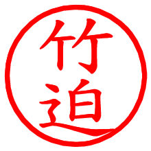 [朱肉の色]を選び、入力窓に“竹迫”と入力して[生成]ボタンを押すと、印影が更新され、リンクから電子印鑑(デジタル印影)がダウンロードできます。 電子印鑑「竹迫」の作り方文字表示が変なときや、文字バランスが悪いときは[字形切替]のチェックボックスでON/OFFを切り替え[生成]しなおしてください。 生成される画像は通常の印影「竹迫.png」と、にじみを表現した少し太めの印影「竹迫B.png」の背面透過PNG形式2種と、鮮明なPDF形式の印影「竹迫.pdf」の計3種類です。 朱肉の微妙な色の違いを7色で表現しました。デフォルト(左端)は、JISが定めた朱肉の色のマンセル値(7.5R 5/14)をRGB値(217,66,54)に変換したものになっています。 「電子透かし」にチェックを入れて[生成]ボタンを押すと、タイムスタンプを電子透かしとして埋め込んだセキュアな電子印鑑が作れます。詳細は別ページの「タイムスタンプと電子透かし」でご覧ください。 竹迫さんの日付印が作れます。「日付スタンプメーカー」は、社内向けの書類に利用されることの多い日付印(データ印)が無料で作れるWebアプリケーションです。中段に日付が入り、上段と下段は、ともに8文字まで文字が入ります。 ![]() 古代文字で落款印が作れます。「落款スタンプメーカー」で作品を引き立たせる落款印が作れます。