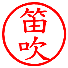 [朱肉の色]を選び、入力窓に“笛吹”と入力して[生成]ボタンを押すと、印影が更新され、リンクから電子印鑑(デジタル印影)がダウンロードできます。 電子印鑑「笛吹」の作り方文字表示が変なときや、文字バランスが悪いときは[字形切替]のチェックボックスでON/OFFを切り替え[生成]しなおしてください。 生成される画像は通常の印影「笛吹.png」と、にじみを表現した少し太めの印影「笛吹B.png」の背面透過PNG形式2種と、鮮明なPDF形式の印影「笛吹.pdf」の計3種類です。 朱肉の微妙な色の違いを7色で表現しました。デフォルト(左端)は、JISが定めた朱肉の色のマンセル値(7.5R 5/14)をRGB値(217,66,54)に変換したものになっています。 「電子透かし」にチェックを入れて[生成]ボタンを押すと、タイムスタンプを電子透かしとして埋め込んだセキュアな電子印鑑が作れます。詳細は別ページの「タイムスタンプと電子透かし」でご覧ください。 笛吹さんの日付印が作れます。「日付スタンプメーカー」は、社内向けの書類に利用されることの多い日付印(データ印)が無料で作れるWebアプリケーションです。中段に日付が入り、上段と下段は、ともに8文字まで文字が入ります。 ![]() 古代文字で落款印が作れます。「落款スタンプメーカー」で作品を引き立たせる落款印が作れます。