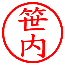 [朱肉の色]を選び、入力窓に“笹内”と入力して[生成]ボタンを押すと、印影が更新され、リンクから電子印鑑(デジタル印影)がダウンロードできます。 電子印鑑「笹内」の作り方文字表示が変なときや、文字バランスが悪いときは[字形切替]のチェックボックスでON/OFFを切り替え[生成]しなおしてください。 生成される画像は通常の印影「笹内.png」と、にじみを表現した少し太めの印影「笹内B.png」の背面透過PNG形式2種と、鮮明なPDF形式の印影「笹内.pdf」の計3種類です。 朱肉の微妙な色の違いを7色で表現しました。デフォルト(左端)は、JISが定めた朱肉の色のマンセル値(7.5R 5/14)をRGB値(217,66,54)に変換したものになっています。 「電子透かし」にチェックを入れて[生成]ボタンを押すと、タイムスタンプを電子透かしとして埋め込んだセキュアな電子印鑑が作れます。詳細は別ページの「タイムスタンプと電子透かし」でご覧ください。 笹内さんの日付印が作れます。「日付スタンプメーカー」は、社内向けの書類に利用されることの多い日付印(データ印)が無料で作れるWebアプリケーションです。中段に日付が入り、上段と下段は、ともに8文字まで文字が入ります。 ![]() 古代文字で落款印が作れます。「落款スタンプメーカー」で作品を引き立たせる落款印が作れます。