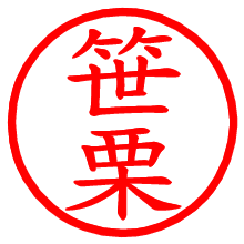 [朱肉の色]を選び、入力窓に“笹栗”と入力して[生成]ボタンを押すと、印影が更新され、リンクから電子印鑑(デジタル印影)がダウンロードできます。 電子印鑑「笹栗」の作り方文字表示が変なときや、文字バランスが悪いときは[字形切替]のチェックボックスでON/OFFを切り替え[生成]しなおしてください。 生成される画像は通常の印影「笹栗.png」と、にじみを表現した少し太めの印影「笹栗B.png」の背面透過PNG形式2種と、鮮明なPDF形式の印影「笹栗.pdf」の計3種類です。 朱肉の微妙な色の違いを7色で表現しました。デフォルト(左端)は、JISが定めた朱肉の色のマンセル値(7.5R 5/14)をRGB値(217,66,54)に変換したものになっています。 「電子透かし」にチェックを入れて[生成]ボタンを押すと、タイムスタンプを電子透かしとして埋め込んだセキュアな電子印鑑が作れます。詳細は別ページの「タイムスタンプと電子透かし」でご覧ください。 笹栗さんの日付印が作れます。「日付スタンプメーカー」は、社内向けの書類に利用されることの多い日付印(データ印)が無料で作れるWebアプリケーションです。中段に日付が入り、上段と下段は、ともに8文字まで文字が入ります。 ![]() 古代文字で落款印が作れます。「落款スタンプメーカー」で作品を引き立たせる落款印が作れます。
