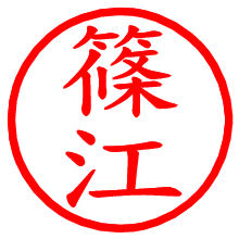 [朱肉の色]を選び、入力窓に“篠江”と入力して[生成]ボタンを押すと、印影が更新され、リンクから電子印鑑(デジタル印影)がダウンロードできます。 電子印鑑「篠江」の作り方文字表示が変なときや、文字バランスが悪いときは[字形切替]のチェックボックスでON/OFFを切り替え[生成]しなおしてください。 生成される画像は通常の印影「篠江.png」と、にじみを表現した少し太めの印影「篠江B.png」の背面透過PNG形式2種と、鮮明なPDF形式の印影「篠江.pdf」の計3種類です。 朱肉の微妙な色の違いを7色で表現しました。デフォルト(左端)は、JISが定めた朱肉の色のマンセル値(7.5R 5/14)をRGB値(217,66,54)に変換したものになっています。 「電子透かし」にチェックを入れて[生成]ボタンを押すと、タイムスタンプを電子透かしとして埋め込んだセキュアな電子印鑑が作れます。詳細は別ページの「タイムスタンプと電子透かし」でご覧ください。 篠江さんの日付印が作れます。「日付スタンプメーカー」は、社内向けの書類に利用されることの多い日付印(データ印)が無料で作れるWebアプリケーションです。中段に日付が入り、上段と下段は、ともに8文字まで文字が入ります。 ![]() 古代文字で落款印が作れます。「落款スタンプメーカー」で作品を引き立たせる落款印が作れます。