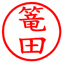 [朱肉の色]を選び、入力窓に“篭田”と入力して[生成]ボタンを押すと、印影が更新され、リンクから電子印鑑(デジタル印影)がダウンロードできます。 電子印鑑「篭田」の作り方文字表示が変なときや、文字バランスが悪いときは[字形切替]のチェックボックスでON/OFFを切り替え[生成]しなおしてください。 生成される画像は通常の印影「篭田.png」と、にじみを表現した少し太めの印影「篭田B.png」の背面透過PNG形式2種と、鮮明なPDF形式の印影「篭田.pdf」の計3種類です。 朱肉の微妙な色の違いを7色で表現しました。デフォルト(左端)は、JISが定めた朱肉の色のマンセル値(7.5R 5/14)をRGB値(217,66,54)に変換したものになっています。 「電子透かし」にチェックを入れて[生成]ボタンを押すと、タイムスタンプを電子透かしとして埋め込んだセキュアな電子印鑑が作れます。詳細は別ページの「タイムスタンプと電子透かし」でご覧ください。 篭田さんの日付印が作れます。「日付スタンプメーカー」は、社内向けの書類に利用されることの多い日付印(データ印)が無料で作れるWebアプリケーションです。中段に日付が入り、上段と下段は、ともに8文字まで文字が入ります。 ![]() 古代文字で落款印が作れます。「落款スタンプメーカー」で作品を引き立たせる落款印が作れます。