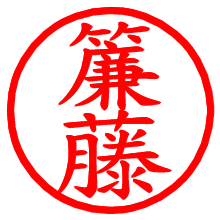 [朱肉の色]を選び、入力窓に“簾藤”と入力して[生成]ボタンを押すと、印影が更新され、リンクから電子印鑑(デジタル印影)がダウンロードできます。 電子印鑑「簾藤」の作り方文字表示が変なときや、文字バランスが悪いときは[字形切替]のチェックボックスでON/OFFを切り替え[生成]しなおしてください。 生成される画像は通常の印影「簾藤.png」と、にじみを表現した少し太めの印影「簾藤B.png」の背面透過PNG形式2種と、鮮明なPDF形式の印影「簾藤.pdf」の計3種類です。 朱肉の微妙な色の違いを7色で表現しました。デフォルト(左端)は、JISが定めた朱肉の色のマンセル値(7.5R 5/14)をRGB値(217,66,54)に変換したものになっています。 「電子透かし」にチェックを入れて[生成]ボタンを押すと、タイムスタンプを透かしとして埋め込んだセキュアな電子印鑑が作れます。詳細は別ページの「電子透かしとタイムスタンプ」でご覧ください。 簾藤さんの日付印が作れます。「日付スタンプメーカー」は、社内向けの書類に利用されることの多い日付印(データ印)が無料で作れるWebアプリケーションです。中段に日付が入り、上段と下段は、ともに8文字まで文字が入ります。 ![]() 古代文字で落款印が作れます。「落款スタンプメーカー」で作品を引き立たせる落款印が作れます。