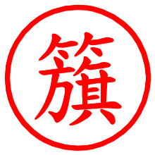 [朱肉の色]を選び、入力窓に“籏”と入力して[生成]ボタンを押すと、印影が更新され、リンクから電子印鑑(デジタル印影)がダウンロードできます。 電子印鑑「籏」の作り方文字表示が変なときや、文字バランスが悪いときは[字形切替]のチェックボックスでON/OFFを切り替え[生成]しなおしてください。 生成される画像は通常の印影「籏.png」と、にじみを表現した少し太めの印影「籏B.png」の背面透過PNG形式2種と、鮮明なPDF形式の印影「籏.pdf」の計3種類です。 朱肉の微妙な色の違いを7色で表現しました。デフォルト(左端)は、JISが定めた朱肉の色のマンセル値(7.5R 5/14)をRGB値(217,66,54)に変換したものになっています。 「電子透かし」にチェックを入れて[生成]ボタンを押すと、タイムスタンプを電子透かしとして埋め込んだセキュアな電子印鑑が作れます。詳細は別ページの「タイムスタンプと電子透かし」でご覧ください。 籏さんの日付印が作れます。「日付スタンプメーカー」は、社内向けの書類に利用されることの多い日付印(データ印)が無料で作れるWebアプリケーションです。中段に日付が入り、上段と下段は、ともに8文字まで文字が入ります。 ![]() 古代文字で落款印が作れます。「落款スタンプメーカー」で作品を引き立たせる落款印が作れます。