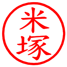 [朱肉の色]を選び、入力窓に“米塚”と入力して[生成]ボタンを押すと、印影が更新され、リンクから電子印鑑(デジタル印影)がダウンロードできます。 電子印鑑「米塚」の作り方文字表示が変なときや、文字バランスが悪いときは[字形切替]のチェックボックスでON/OFFを切り替え[生成]しなおしてください。 生成される画像は通常の印影「米塚.png」と、にじみを表現した少し太めの印影「米塚B.png」の背面透過PNG形式2種と、鮮明なPDF形式の印影「米塚.pdf」の計3種類です。 朱肉の微妙な色の違いを7色で表現しました。デフォルト(左端)は、JISが定めた朱肉の色のマンセル値(7.5R 5/14)をRGB値(217,66,54)に変換したものになっています。 「電子透かし」にチェックを入れて[生成]ボタンを押すと、タイムスタンプを電子透かしとして埋め込んだセキュアな電子印鑑が作れます。詳細は別ページの「タイムスタンプと電子透かし」でご覧ください。 米塚さんの日付印が作れます。「日付スタンプメーカー」は、社内向けの書類に利用されることの多い日付印(データ印)が無料で作れるWebアプリケーションです。中段に日付が入り、上段と下段は、ともに8文字まで文字が入ります。 ![]() 古代文字で落款印が作れます。「落款スタンプメーカー」で作品を引き立たせる落款印が作れます。