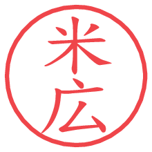[朱肉の色]を選び、入力窓に“米広”と入力して[生成]ボタンを押すと、印影が更新され、リンクから電子印鑑(デジタル印影)がダウンロードできます。 電子印鑑「米広」の作り方文字表示が変なときや、文字バランスが悪いときは[字形切替]のチェックボックスでON/OFFを切り替え[生成]しなおしてください。 生成される画像は通常の印影「米広.png」と、にじみを表現した少し太めの印影「米広B.png」の背面透過PNG形式2種と、鮮明なPDF形式の印影「米広.pdf」の計3種類です。 朱肉の微妙な色の違いを7色で表現しました。デフォルト(左端)は、JISが定めた朱肉の色のマンセル値(7.5R 5/14)をRGB値(217,66,54)に変換したものになっています。 「電子透かし」にチェックを入れて[生成]ボタンを押すと、タイムスタンプを透かしとして埋め込んだセキュアな電子印鑑が作れます。詳細は別ページの「電子透かしとタイムスタンプ」でご覧ください。 米広さんの日付印が作れます。「日付スタンプメーカー」は、社内向けの書類に利用されることの多い日付印(データ印)が無料で作れるWebアプリケーションです。中段に日付が入り、上段と下段は、ともに8文字まで文字が入ります。 ![]() 古代文字で落款印が作れます。「落款スタンプメーカー」で作品を引き立たせる落款印が作れます。
