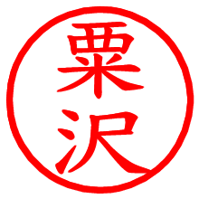 [朱肉の色]を選び、入力窓に“粟沢”と入力して[生成]ボタンを押すと、印影が更新され、リンクから電子印鑑(デジタル印影)がダウンロードできます。 電子印鑑「粟沢」の作り方文字表示が変なときや、文字バランスが悪いときは[字形切替]のチェックボックスでON/OFFを切り替え[生成]しなおしてください。 生成される画像は通常の印影「粟沢.png」と、にじみを表現した少し太めの印影「粟沢B.png」の背面透過PNG形式2種と、鮮明なPDF形式の印影「粟沢.pdf」の計3種類です。 朱肉の微妙な色の違いを7色で表現しました。デフォルト(左端)は、JISが定めた朱肉の色のマンセル値(7.5R 5/14)をRGB値(217,66,54)に変換したものになっています。 「電子透かし」にチェックを入れて[生成]ボタンを押すと、タイムスタンプを電子透かしとして埋め込んだセキュアな電子印鑑が作れます。詳細は別ページの「タイムスタンプと電子透かし」でご覧ください。 粟沢さんの日付印が作れます。「日付スタンプメーカー」は、社内向けの書類に利用されることの多い日付印(データ印)が無料で作れるWebアプリケーションです。中段に日付が入り、上段と下段は、ともに8文字まで文字が入ります。 ![]() 古代文字で落款印が作れます。「落款スタンプメーカー」で作品を引き立たせる落款印が作れます。