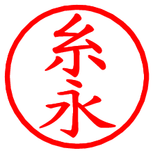 [朱肉の色]を選び、入力窓に“糸永”と入力して[生成]ボタンを押すと、印影が更新され、リンクから電子印鑑(デジタル印影)がダウンロードできます。 電子印鑑「糸永」の作り方文字表示が変なときや、文字バランスが悪いときは[字形切替]のチェックボックスでON/OFFを切り替え[生成]しなおしてください。 生成される画像は通常の印影「糸永.png」と、にじみを表現した少し太めの印影「糸永B.png」の背面透過PNG形式2種と、鮮明なPDF形式の印影「糸永.pdf」の計3種類です。 朱肉の微妙な色の違いを7色で表現しました。デフォルト(左端)は、JISが定めた朱肉の色のマンセル値(7.5R 5/14)をRGB値(217,66,54)に変換したものになっています。 「電子透かし」にチェックを入れて[生成]ボタンを押すと、タイムスタンプを電子透かしとして埋め込んだセキュアな電子印鑑が作れます。詳細は別ページの「タイムスタンプと電子透かし」でご覧ください。 糸永さんの日付印が作れます。「日付スタンプメーカー」は、社内向けの書類に利用されることの多い日付印(データ印)が無料で作れるWebアプリケーションです。中段に日付が入り、上段と下段は、ともに8文字まで文字が入ります。 ![]() 古代文字で落款印が作れます。「落款スタンプメーカー」で作品を引き立たせる落款印が作れます。
