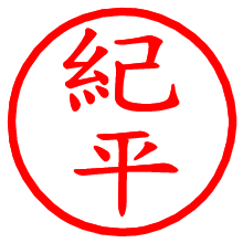 [朱肉の色]を選び、入力窓に“紀平”と入力して[生成]ボタンを押すと、印影が更新され、リンクから電子印鑑(デジタル印影)がダウンロードできます。 電子印鑑「紀平」の作り方文字表示が変なときや、文字バランスが悪いときは[字形切替]のチェックボックスでON/OFFを切り替え[生成]しなおしてください。 生成される画像は通常の印影「紀平.png」と、にじみを表現した少し太めの印影「紀平B.png」の背面透過PNG形式2種と、鮮明なPDF形式の印影「紀平.pdf」の計3種類です。 朱肉の微妙な色の違いを7色で表現しました。デフォルト(左端)は、JISが定めた朱肉の色のマンセル値(7.5R 5/14)をRGB値(217,66,54)に変換したものになっています。 「電子透かし」にチェックを入れて[生成]ボタンを押すと、タイムスタンプを電子透かしとして埋め込んだセキュアな電子印鑑が作れます。詳細は別ページの「タイムスタンプと電子透かし」でご覧ください。 紀平さんの日付印が作れます。「日付スタンプメーカー」は、社内向けの書類に利用されることの多い日付印(データ印)が無料で作れるWebアプリケーションです。中段に日付が入り、上段と下段は、ともに8文字まで文字が入ります。 ![]() 古代文字で落款印が作れます。「落款スタンプメーカー」で作品を引き立たせる落款印が作れます。