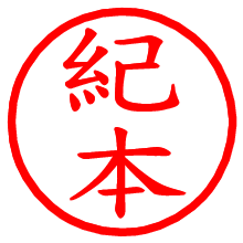 [朱肉の色]を選び、入力窓に“紀本”と入力して[生成]ボタンを押すと、印影が更新され、リンクから電子印鑑(デジタル印影)がダウンロードできます。 電子印鑑「紀本」の作り方文字表示が変なときや、文字バランスが悪いときは[字形切替]のチェックボックスでON/OFFを切り替え[生成]しなおしてください。 生成される画像は通常の印影「紀本.png」と、にじみを表現した少し太めの印影「紀本B.png」の背面透過PNG形式2種と、鮮明なPDF形式の印影「紀本.pdf」の計3種類です。 朱肉の微妙な色の違いを7色で表現しました。デフォルト(左端)は、JISが定めた朱肉の色のマンセル値(7.5R 5/14)をRGB値(217,66,54)に変換したものになっています。 「電子透かし」にチェックを入れて[生成]ボタンを押すと、タイムスタンプを電子透かしとして埋め込んだセキュアな電子印鑑が作れます。詳細は別ページの「タイムスタンプと電子透かし」でご覧ください。 紀本さんの日付印が作れます。「日付スタンプメーカー」は、社内向けの書類に利用されることの多い日付印(データ印)が無料で作れるWebアプリケーションです。中段に日付が入り、上段と下段は、ともに8文字まで文字が入ります。 ![]() 古代文字で落款印が作れます。「落款スタンプメーカー」で作品を引き立たせる落款印が作れます。
