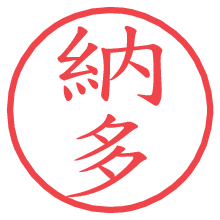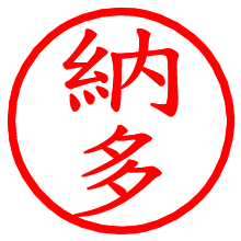[朱肉の色]を選び、入力窓に“納多”と入力して[生成]ボタンを押すと、印影が更新され、リンクから電子印鑑(デジタル印影)がダウンロードできます。 電子印鑑「納多」の作り方文字表示が変なときや、文字バランスが悪いときは[字形切替]のチェックボックスでON/OFFを切り替え[生成]しなおしてください。 生成される画像は通常の印影「納多.png」と、にじみを表現した少し太めの印影「納多B.png」の背面透過PNG形式2種と、鮮明なPDF形式の印影「納多.pdf」の計3種類です。 朱肉の微妙な色の違いを7色で表現しました。デフォルト(左端)は、JISが定めた朱肉の色のマンセル値(7.5R 5/14)をRGB値(217,66,54)に変換したものになっています。 「電子透かし」にチェックを入れて[生成]ボタンを押すと、タイムスタンプを電子透かしとして埋め込んだセキュアな電子印鑑が作れます。詳細は別ページの「タイムスタンプと電子透かし」でご覧ください。 納多さんの日付印が作れます。「日付スタンプメーカー」は、社内向けの書類に利用されることの多い日付印(データ印)が無料で作れるWebアプリケーションです。中段に日付が入り、上段と下段は、ともに8文字まで文字が入ります。 ![]() 古代文字で落款印が作れます。「落款スタンプメーカー」で作品を引き立たせる落款印が作れます。