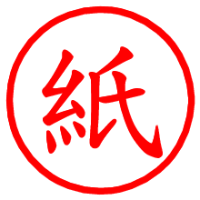 [朱肉の色]を選び、入力窓に“紙”と入力して[生成]ボタンを押すと、印影が更新され、リンクから電子印鑑(デジタル印影)がダウンロードできます。 電子印鑑「紙」の作り方文字表示が変なときや、文字バランスが悪いときは[字形切替]のチェックボックスでON/OFFを切り替え[生成]しなおしてください。 生成される画像は通常の印影「紙.png」と、にじみを表現した少し太めの印影「紙B.png」の背面透過PNG形式2種と、鮮明なPDF形式の印影「紙.pdf」の計3種類です。 朱肉の微妙な色の違いを7色で表現しました。デフォルト(左端)は、JISが定めた朱肉の色のマンセル値(7.5R 5/14)をRGB値(217,66,54)に変換したものになっています。 「電子透かし」にチェックを入れて[生成]ボタンを押すと、タイムスタンプを透かしとして埋め込んだセキュアな電子印鑑が作れます。詳細は別ページの「電子透かしとタイムスタンプ」でご覧ください。  紙さんの日付印が作れます。「日付スタンプメーカー」は、社内向けの書類に利用されることの多い日付印(データ印)が無料で作れるWebアプリケーションです。中段に日付が入り、上段と下段は、ともに8文字まで文字が入ります。 ![]()  古代文字で落款印が作れます。「落款スタンプメーカー」で作品を引き立たせる落款印が作れます。