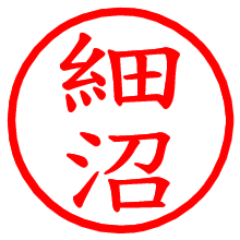 [朱肉の色]を選び、入力窓に“細沼”と入力して[生成]ボタンを押すと、印影が更新され、リンクから電子印鑑(デジタル印影)がダウンロードできます。 電子印鑑「細沼」の作り方文字表示が変なときや、文字バランスが悪いときは[字形切替]のチェックボックスでON/OFFを切り替え[生成]しなおしてください。 生成される画像は通常の印影「細沼.png」と、にじみを表現した少し太めの印影「細沼B.png」の背面透過PNG形式2種と、鮮明なPDF形式の印影「細沼.pdf」の計3種類です。 朱肉の微妙な色の違いを7色で表現しました。デフォルト(左端)は、JISが定めた朱肉の色のマンセル値(7.5R 5/14)をRGB値(217,66,54)に変換したものになっています。 「電子透かし」にチェックを入れて[生成]ボタンを押すと、タイムスタンプを透かしとして埋め込んだセキュアな電子印鑑が作れます。詳細は別ページの「電子透かしとタイムスタンプ」でご覧ください。 細沼さんの日付印が作れます。「日付スタンプメーカー」は、社内向けの書類に利用されることの多い日付印(データ印)が無料で作れるWebアプリケーションです。中段に日付が入り、上段と下段は、ともに8文字まで文字が入ります。 ![]() 古代文字で落款印が作れます。「落款スタンプメーカー」で作品を引き立たせる落款印が作れます。