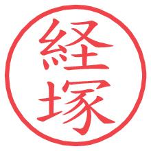 [朱肉の色]を選び、入力窓に“経塚”と入力して[生成]ボタンを押すと、印影が更新され、リンクから電子印鑑(デジタル印影)がダウンロードできます。 電子印鑑「経塚」の作り方文字表示が変なときや、文字バランスが悪いときは[字形切替]のチェックボックスでON/OFFを切り替え[生成]しなおしてください。 生成される画像は通常の印影「経塚.png」と、にじみを表現した少し太めの印影「経塚B.png」の背面透過PNG形式2種と、鮮明なPDF形式の印影「経塚.pdf」の計3種類です。 朱肉の微妙な色の違いを7色で表現しました。デフォルト(左端)は、JISが定めた朱肉の色のマンセル値(7.5R 5/14)をRGB値(217,66,54)に変換したものになっています。 「電子透かし」にチェックを入れて[生成]ボタンを押すと、タイムスタンプを電子透かしとして埋め込んだセキュアな電子印鑑が作れます。詳細は別ページの「タイムスタンプと電子透かし」でご覧ください。 経塚さんの日付印が作れます。「日付スタンプメーカー」は、社内向けの書類に利用されることの多い日付印(データ印)が無料で作れるWebアプリケーションです。中段に日付が入り、上段と下段は、ともに8文字まで文字が入ります。 ![]() 古代文字で落款印が作れます。「落款スタンプメーカー」で作品を引き立たせる落款印が作れます。