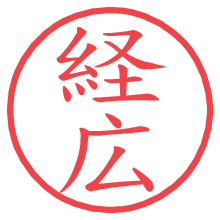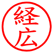 [朱肉の色]を選び、入力窓に“経広”と入力して[生成]ボタンを押すと、印影が更新され、リンクから電子印鑑(デジタル印影)がダウンロードできます。 電子印鑑「経広」の作り方文字表示が変なときや、文字バランスが悪いときは[字形切替]のチェックボックスでON/OFFを切り替え[生成]しなおしてください。 生成される画像は通常の印影「経広.png」と、にじみを表現した少し太めの印影「経広B.png」の背面透過PNG形式2種と、鮮明なPDF形式の印影「経広.pdf」の計3種類です。 朱肉の微妙な色の違いを7色で表現しました。デフォルト(左端)は、JISが定めた朱肉の色のマンセル値(7.5R 5/14)をRGB値(217,66,54)に変換したものになっています。 「電子透かし」にチェックを入れて[生成]ボタンを押すと、タイムスタンプを電子透かしとして埋め込んだセキュアな電子印鑑が作れます。詳細は別ページの「タイムスタンプと電子透かし」でご覧ください。 経広さんの日付印が作れます。「日付スタンプメーカー」は、社内向けの書類に利用されることの多い日付印(データ印)が無料で作れるWebアプリケーションです。中段に日付が入り、上段と下段は、ともに8文字まで文字が入ります。 ![]() 古代文字で落款印が作れます。「落款スタンプメーカー」で作品を引き立たせる落款印が作れます。