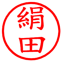 [朱肉の色]を選び、入力窓に“絹田”と入力して[生成]ボタンを押すと、印影が更新され、リンクから電子印鑑(デジタル印影)がダウンロードできます。 電子印鑑「絹田」の作り方文字表示が変なときや、文字バランスが悪いときは[字形切替]のチェックボックスでON/OFFを切り替え[生成]しなおしてください。 生成される画像は通常の印影「絹田.png」と、にじみを表現した少し太めの印影「絹田B.png」の背面透過PNG形式2種と、鮮明なPDF形式の印影「絹田.pdf」の計3種類です。 朱肉の微妙な色の違いを7色で表現しました。デフォルト(左端)は、JISが定めた朱肉の色のマンセル値(7.5R 5/14)をRGB値(217,66,54)に変換したものになっています。 「電子透かし」にチェックを入れて[生成]ボタンを押すと、タイムスタンプを電子透かしとして埋め込んだセキュアな電子印鑑が作れます。詳細は別ページの「タイムスタンプと電子透かし」でご覧ください。 絹田さんの日付印が作れます。「日付スタンプメーカー」は、社内向けの書類に利用されることの多い日付印(データ印)が無料で作れるWebアプリケーションです。中段に日付が入り、上段と下段は、ともに8文字まで文字が入ります。 ![]() 古代文字で落款印が作れます。「落款スタンプメーカー」で作品を引き立たせる落款印が作れます。