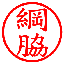 [朱肉の色]を選び、入力窓に“綱脇”と入力して[生成]ボタンを押すと、印影が更新され、リンクから電子印鑑(デジタル印影)がダウンロードできます。 電子印鑑「綱脇」の作り方文字表示が変なときや、文字バランスが悪いときは[字形切替]のチェックボックスでON/OFFを切り替え[生成]しなおしてください。 生成される画像は通常の印影「綱脇.png」と、にじみを表現した少し太めの印影「綱脇B.png」の背面透過PNG形式2種と、鮮明なPDF形式の印影「綱脇.pdf」の計3種類です。 朱肉の微妙な色の違いを7色で表現しました。デフォルト(左端)は、JISが定めた朱肉の色のマンセル値(7.5R 5/14)をRGB値(217,66,54)に変換したものになっています。 「電子透かし」にチェックを入れて[生成]ボタンを押すと、タイムスタンプを電子透かしとして埋め込んだセキュアな電子印鑑が作れます。詳細は別ページの「タイムスタンプと電子透かし」でご覧ください。 綱脇さんの日付印が作れます。「日付スタンプメーカー」は、社内向けの書類に利用されることの多い日付印(データ印)が無料で作れるWebアプリケーションです。中段に日付が入り、上段と下段は、ともに8文字まで文字が入ります。 ![]() 古代文字で落款印が作れます。「落款スタンプメーカー」で作品を引き立たせる落款印が作れます。