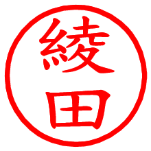 [朱肉の色]を選び、入力窓に“綾田”と入力して[生成]ボタンを押すと、印影が更新され、リンクから電子印鑑(デジタル印影)がダウンロードできます。 電子印鑑「綾田」の作り方文字表示が変なときや、文字バランスが悪いときは[字形切替]のチェックボックスでON/OFFを切り替え[生成]しなおしてください。 生成される画像は通常の印影「綾田.png」と、にじみを表現した少し太めの印影「綾田B.png」の背面透過PNG形式2種と、鮮明なPDF形式の印影「綾田.pdf」の計3種類です。 朱肉の微妙な色の違いを7色で表現しました。デフォルト(左端)は、JISが定めた朱肉の色のマンセル値(7.5R 5/14)をRGB値(217,66,54)に変換したものになっています。 「電子透かし」にチェックを入れて[生成]ボタンを押すと、タイムスタンプを電子透かしとして埋め込んだセキュアな電子印鑑が作れます。詳細は別ページの「タイムスタンプと電子透かし」でご覧ください。 綾田さんの日付印が作れます。「日付スタンプメーカー」は、社内向けの書類に利用されることの多い日付印(データ印)が無料で作れるWebアプリケーションです。中段に日付が入り、上段と下段は、ともに8文字まで文字が入ります。 ![]() 古代文字で落款印が作れます。「落款スタンプメーカー」で作品を引き立たせる落款印が作れます。