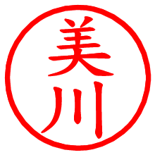 [朱肉の色]を選び、入力窓に“美川”と入力して[生成]ボタンを押すと、印影が更新され、リンクから電子印鑑(デジタル印影)がダウンロードできます。 電子印鑑「美川」の作り方文字表示が変なときや、文字バランスが悪いときは[字形切替]のチェックボックスでON/OFFを切り替え[生成]しなおしてください。 生成される画像は通常の印影「美川.png」と、にじみを表現した少し太めの印影「美川B.png」の背面透過PNG形式2種と、鮮明なPDF形式の印影「美川.pdf」の計3種類です。 朱肉の微妙な色の違いを7色で表現しました。デフォルト(左端)は、JISが定めた朱肉の色のマンセル値(7.5R 5/14)をRGB値(217,66,54)に変換したものになっています。 「電子透かし」にチェックを入れて[生成]ボタンを押すと、タイムスタンプを電子透かしとして埋め込んだセキュアな電子印鑑が作れます。詳細は別ページの「タイムスタンプと電子透かし」でご覧ください。 美川さんの日付印が作れます。「日付スタンプメーカー」は、社内向けの書類に利用されることの多い日付印(データ印)が無料で作れるWebアプリケーションです。中段に日付が入り、上段と下段は、ともに8文字まで文字が入ります。 ![]() 古代文字で落款印が作れます。「落款スタンプメーカー」で作品を引き立たせる落款印が作れます。