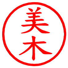 [朱肉の色]を選び、入力窓に“美木”と入力して[生成]ボタンを押すと、印影が更新され、リンクから電子印鑑(デジタル印影)がダウンロードできます。 電子印鑑「美木」の作り方文字表示が変なときや、文字バランスが悪いときは[字形切替]のチェックボックスでON/OFFを切り替え[生成]しなおしてください。 生成される画像は通常の印影「美木.png」と、にじみを表現した少し太めの印影「美木B.png」の背面透過PNG形式2種と、鮮明なPDF形式の印影「美木.pdf」の計3種類です。 朱肉の微妙な色の違いを7色で表現しました。デフォルト(左端)は、JISが定めた朱肉の色のマンセル値(7.5R 5/14)をRGB値(217,66,54)に変換したものになっています。 「電子透かし」にチェックを入れて[生成]ボタンを押すと、タイムスタンプを電子透かしとして埋め込んだセキュアな電子印鑑が作れます。詳細は別ページの「タイムスタンプと電子透かし」でご覧ください。 美木さんの日付印が作れます。「日付スタンプメーカー」は、社内向けの書類に利用されることの多い日付印(データ印)が無料で作れるWebアプリケーションです。中段に日付が入り、上段と下段は、ともに8文字まで文字が入ります。 ![]() 古代文字で落款印が作れます。「落款スタンプメーカー」で作品を引き立たせる落款印が作れます。