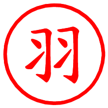 [朱肉の色]を選び、入力窓に“羽”と入力して[生成]ボタンを押すと、印影が更新され、リンクから電子印鑑(デジタル印影)がダウンロードできます。 電子印鑑「羽」の作り方文字表示が変なときや、文字バランスが悪いときは[字形切替]のチェックボックスでON/OFFを切り替え[生成]しなおしてください。 生成される画像は通常の印影「羽.png」と、にじみを表現した少し太めの印影「羽B.png」の背面透過PNG形式2種と、鮮明なPDF形式の印影「羽.pdf」の計3種類です。 朱肉の微妙な色の違いを7色で表現しました。デフォルト(左端)は、JISが定めた朱肉の色のマンセル値(7.5R 5/14)をRGB値(217,66,54)に変換したものになっています。 「電子透かし」にチェックを入れて[生成]ボタンを押すと、タイムスタンプを電子透かしとして埋め込んだセキュアな電子印鑑が作れます。詳細は別ページの「タイムスタンプと電子透かし」でご覧ください。 羽さんの日付印が作れます。「日付スタンプメーカー」は、社内向けの書類に利用されることの多い日付印(データ印)が無料で作れるWebアプリケーションです。中段に日付が入り、上段と下段は、ともに8文字まで文字が入ります。 ![]() 古代文字で落款印が作れます。「落款スタンプメーカー」で作品を引き立たせる落款印が作れます。