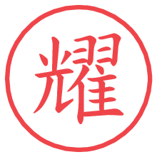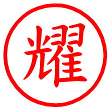 [朱肉の色]を選び、入力窓に“耀”と入力して[生成]ボタンを押すと、印影が更新され、リンクから電子印鑑(デジタル印影)がダウンロードできます。 電子印鑑「耀」の作り方文字表示が変なときや、文字バランスが悪いときは[字形切替]のチェックボックスでON/OFFを切り替え[生成]しなおしてください。 生成される画像は通常の印影「耀.png」と、にじみを表現した少し太めの印影「耀B.png」の背面透過PNG形式2種と、鮮明なPDF形式の印影「耀.pdf」の計3種類です。 朱肉の微妙な色の違いを7色で表現しました。デフォルト(左端)は、JISが定めた朱肉の色のマンセル値(7.5R 5/14)をRGB値(217,66,54)に変換したものになっています。 「電子透かし」にチェックを入れて[生成]ボタンを押すと、タイムスタンプを電子透かしとして埋め込んだセキュアな電子印鑑が作れます。詳細は別ページの「タイムスタンプと電子透かし」でご覧ください。 耀さんの日付印が作れます。「日付スタンプメーカー」は、社内向けの書類に利用されることの多い日付印(データ印)が無料で作れるWebアプリケーションです。中段に日付が入り、上段と下段は、ともに8文字まで文字が入ります。 ![]() 古代文字で落款印が作れます。「落款スタンプメーカー」で作品を引き立たせる落款印が作れます。