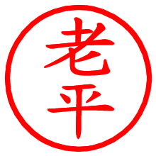 [朱肉の色]を選び、入力窓に“老平”と入力して[生成]ボタンを押すと、印影が更新され、リンクから電子印鑑(デジタル印影)がダウンロードできます。 電子印鑑「老平」の作り方文字表示が変なときや、文字バランスが悪いときは[字形切替]のチェックボックスでON/OFFを切り替え[生成]しなおしてください。 生成される画像は通常の印影「老平.png」と、にじみを表現した少し太めの印影「老平B.png」の背面透過PNG形式2種と、鮮明なPDF形式の印影「老平.pdf」の計3種類です。 朱肉の微妙な色の違いを7色で表現しました。デフォルト(左端)は、JISが定めた朱肉の色のマンセル値(7.5R 5/14)をRGB値(217,66,54)に変換したものになっています。 「電子透かし」にチェックを入れて[生成]ボタンを押すと、タイムスタンプを電子透かしとして埋め込んだセキュアな電子印鑑が作れます。詳細は別ページの「タイムスタンプと電子透かし」でご覧ください。 老平さんの日付印が作れます。「日付スタンプメーカー」は、社内向けの書類に利用されることの多い日付印(データ印)が無料で作れるWebアプリケーションです。中段に日付が入り、上段と下段は、ともに8文字まで文字が入ります。 ![]() 古代文字で落款印が作れます。「落款スタンプメーカー」で作品を引き立たせる落款印が作れます。