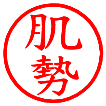 [朱肉の色]を選び、入力窓に“肌勢”と入力して[生成]ボタンを押すと、印影が更新され、リンクから電子印鑑(デジタル印影)がダウンロードできます。 電子印鑑「肌勢」の作り方文字表示が変なときや、文字バランスが悪いときは[字形切替]のチェックボックスでON/OFFを切り替え[生成]しなおしてください。 生成される画像は通常の印影「肌勢.png」と、にじみを表現した少し太めの印影「肌勢B.png」の背面透過PNG形式2種と、鮮明なPDF形式の印影「肌勢.pdf」の計3種類です。 朱肉の微妙な色の違いを7色で表現しました。デフォルト(左端)は、JISが定めた朱肉の色のマンセル値(7.5R 5/14)をRGB値(217,66,54)に変換したものになっています。 「電子透かし」にチェックを入れて[生成]ボタンを押すと、タイムスタンプを電子透かしとして埋め込んだセキュアな電子印鑑が作れます。詳細は別ページの「タイムスタンプと電子透かし」でご覧ください。 肌勢さんの日付印が作れます。「日付スタンプメーカー」は、社内向けの書類に利用されることの多い日付印(データ印)が無料で作れるWebアプリケーションです。中段に日付が入り、上段と下段は、ともに8文字まで文字が入ります。 ![]() 古代文字で落款印が作れます。「落款スタンプメーカー」で作品を引き立たせる落款印が作れます。