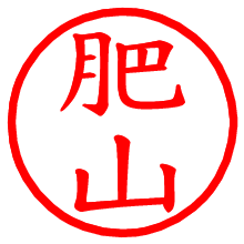 [朱肉の色]を選び、入力窓に“肥山”と入力して[生成]ボタンを押すと、印影が更新され、リンクから電子印鑑(デジタル印影)がダウンロードできます。 電子印鑑「肥山」の作り方文字表示が変なときや、文字バランスが悪いときは[字形切替]のチェックボックスでON/OFFを切り替え[生成]しなおしてください。 生成される画像は通常の印影「肥山.png」と、にじみを表現した少し太めの印影「肥山B.png」の背面透過PNG形式2種と、鮮明なPDF形式の印影「肥山.pdf」の計3種類です。 朱肉の微妙な色の違いを7色で表現しました。デフォルト(左端)は、JISが定めた朱肉の色のマンセル値(7.5R 5/14)をRGB値(217,66,54)に変換したものになっています。 「電子透かし」にチェックを入れて[生成]ボタンを押すと、タイムスタンプを電子透かしとして埋め込んだセキュアな電子印鑑が作れます。詳細は別ページの「タイムスタンプと電子透かし」でご覧ください。 肥山さんの日付印が作れます。「日付スタンプメーカー」は、社内向けの書類に利用されることの多い日付印(データ印)が無料で作れるWebアプリケーションです。中段に日付が入り、上段と下段は、ともに8文字まで文字が入ります。 ![]() 古代文字で落款印が作れます。「落款スタンプメーカー」で作品を引き立たせる落款印が作れます。