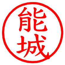 [朱肉の色]を選び、入力窓に“能城”と入力して[生成]ボタンを押すと、印影が更新され、リンクから電子印鑑(デジタル印影)がダウンロードできます。 電子印鑑「能城」の作り方文字表示が変なときや、文字バランスが悪いときは[字形切替]のチェックボックスでON/OFFを切り替え[生成]しなおしてください。 生成される画像は通常の印影「能城.png」と、にじみを表現した少し太めの印影「能城B.png」の背面透過PNG形式2種と、鮮明なPDF形式の印影「能城.pdf」の計3種類です。 朱肉の微妙な色の違いを7色で表現しました。デフォルト(左端)は、JISが定めた朱肉の色のマンセル値(7.5R 5/14)をRGB値(217,66,54)に変換したものになっています。 「電子透かし」にチェックを入れて[生成]ボタンを押すと、タイムスタンプを電子透かしとして埋め込んだセキュアな電子印鑑が作れます。詳細は別ページの「タイムスタンプと電子透かし」でご覧ください。 能城さんの日付印が作れます。「日付スタンプメーカー」は、社内向けの書類に利用されることの多い日付印(データ印)が無料で作れるWebアプリケーションです。中段に日付が入り、上段と下段は、ともに8文字まで文字が入ります。 ![]() 古代文字で落款印が作れます。「落款スタンプメーカー」で作品を引き立たせる落款印が作れます。