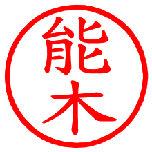 [朱肉の色]を選び、入力窓に“能木”と入力して[生成]ボタンを押すと、印影が更新され、リンクから電子印鑑(デジタル印影)がダウンロードできます。 電子印鑑「能木」の作り方文字表示が変なときや、文字バランスが悪いときは[字形切替]のチェックボックスでON/OFFを切り替え[生成]しなおしてください。 生成される画像は通常の印影「能木.png」と、にじみを表現した少し太めの印影「能木B.png」の背面透過PNG形式2種と、鮮明なPDF形式の印影「能木.pdf」の計3種類です。 朱肉の微妙な色の違いを7色で表現しました。デフォルト(左端)は、JISが定めた朱肉の色のマンセル値(7.5R 5/14)をRGB値(217,66,54)に変換したものになっています。 「電子透かし」にチェックを入れて[生成]ボタンを押すと、タイムスタンプを透かしとして埋め込んだセキュアな電子印鑑が作れます。詳細は別ページの「電子透かしとタイムスタンプ」でご覧ください。 能木さんの日付印が作れます。「日付スタンプメーカー」は、社内向けの書類に利用されることの多い日付印(データ印)が無料で作れるWebアプリケーションです。中段に日付が入り、上段と下段は、ともに8文字まで文字が入ります。 ![]() 古代文字で落款印が作れます。「落款スタンプメーカー」で作品を引き立たせる落款印が作れます。
