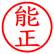 [朱肉の色]を選び、入力窓に“能正”と入力して[生成]ボタンを押すと、印影が更新され、リンクから電子印鑑(デジタル印影)がダウンロードできます。 電子印鑑「能正」の作り方文字表示が変なときや、文字バランスが悪いときは[字形切替]のチェックボックスでON/OFFを切り替え[生成]しなおしてください。 生成される画像は通常の印影「能正.png」と、にじみを表現した少し太めの印影「能正B.png」の背面透過PNG形式2種と、鮮明なPDF形式の印影「能正.pdf」の計3種類です。 朱肉の微妙な色の違いを7色で表現しました。デフォルト(左端)は、JISが定めた朱肉の色のマンセル値(7.5R 5/14)をRGB値(217,66,54)に変換したものになっています。 「電子透かし」にチェックを入れて[生成]ボタンを押すと、タイムスタンプを透かしとして埋め込んだセキュアな電子印鑑が作れます。詳細は別ページの「電子透かしとタイムスタンプ」でご覧ください。 能正さんの日付印が作れます。「日付スタンプメーカー」は、社内向けの書類に利用されることの多い日付印(データ印)が無料で作れるWebアプリケーションです。中段に日付が入り、上段と下段は、ともに8文字まで文字が入ります。 ![]() 古代文字で落款印が作れます。「落款スタンプメーカー」で作品を引き立たせる落款印が作れます。