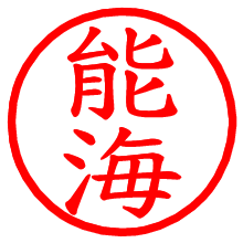 [朱肉の色]を選び、入力窓に“能海”と入力して[生成]ボタンを押すと、印影が更新され、リンクから電子印鑑(デジタル印影)がダウンロードできます。 電子印鑑「能海」の作り方文字表示が変なときや、文字バランスが悪いときは[字形切替]のチェックボックスでON/OFFを切り替え[生成]しなおしてください。 生成される画像は通常の印影「能海.png」と、にじみを表現した少し太めの印影「能海B.png」の背面透過PNG形式2種と、鮮明なPDF形式の印影「能海.pdf」の計3種類です。 朱肉の微妙な色の違いを7色で表現しました。デフォルト(左端)は、JISが定めた朱肉の色のマンセル値(7.5R 5/14)をRGB値(217,66,54)に変換したものになっています。 「電子透かし」にチェックを入れて[生成]ボタンを押すと、タイムスタンプを電子透かしとして埋め込んだセキュアな電子印鑑が作れます。詳細は別ページの「タイムスタンプと電子透かし」でご覧ください。 能海さんの日付印が作れます。「日付スタンプメーカー」は、社内向けの書類に利用されることの多い日付印(データ印)が無料で作れるWebアプリケーションです。中段に日付が入り、上段と下段は、ともに8文字まで文字が入ります。 ![]() 古代文字で落款印が作れます。「落款スタンプメーカー」で作品を引き立たせる落款印が作れます。