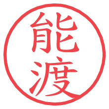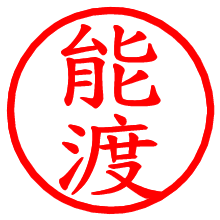 [朱肉の色]を選び、入力窓に“能渡”と入力して[生成]ボタンを押すと、印影が更新され、リンクから電子印鑑(デジタル印影)がダウンロードできます。 電子印鑑「能渡」の作り方文字表示が変なときや、文字バランスが悪いときは[字形切替]のチェックボックスでON/OFFを切り替え[生成]しなおしてください。 生成される画像は通常の印影「能渡.png」と、にじみを表現した少し太めの印影「能渡B.png」の背面透過PNG形式2種と、鮮明なPDF形式の印影「能渡.pdf」の計3種類です。 朱肉の微妙な色の違いを7色で表現しました。デフォルト(左端)は、JISが定めた朱肉の色のマンセル値(7.5R 5/14)をRGB値(217,66,54)に変換したものになっています。 「電子透かし」にチェックを入れて[生成]ボタンを押すと、タイムスタンプを電子透かしとして埋め込んだセキュアな電子印鑑が作れます。詳細は別ページの「タイムスタンプと電子透かし」でご覧ください。 能渡さんの日付印が作れます。「日付スタンプメーカー」は、社内向けの書類に利用されることの多い日付印(データ印)が無料で作れるWebアプリケーションです。中段に日付が入り、上段と下段は、ともに8文字まで文字が入ります。 ![]() 古代文字で落款印が作れます。「落款スタンプメーカー」で作品を引き立たせる落款印が作れます。