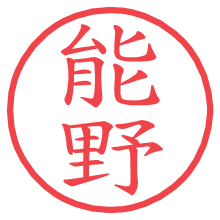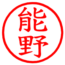 [朱肉の色]を選び、入力窓に“能野”と入力して[生成]ボタンを押すと、印影が更新され、リンクから電子印鑑(デジタル印影)がダウンロードできます。 電子印鑑「能野」の作り方文字表示が変なときや、文字バランスが悪いときは[字形切替]のチェックボックスでON/OFFを切り替え[生成]しなおしてください。 生成される画像は通常の印影「能野.png」と、にじみを表現した少し太めの印影「能野B.png」の背面透過PNG形式2種と、鮮明なPDF形式の印影「能野.pdf」の計3種類です。 朱肉の微妙な色の違いを7色で表現しました。デフォルト(左端)は、JISが定めた朱肉の色のマンセル値(7.5R 5/14)をRGB値(217,66,54)に変換したものになっています。 「電子透かし」にチェックを入れて[生成]ボタンを押すと、タイムスタンプを電子透かしとして埋め込んだセキュアな電子印鑑が作れます。詳細は別ページの「タイムスタンプと電子透かし」でご覧ください。 能野さんの日付印が作れます。「日付スタンプメーカー」は、社内向けの書類に利用されることの多い日付印(データ印)が無料で作れるWebアプリケーションです。中段に日付が入り、上段と下段は、ともに8文字まで文字が入ります。 ![]() 古代文字で落款印が作れます。「落款スタンプメーカー」で作品を引き立たせる落款印が作れます。