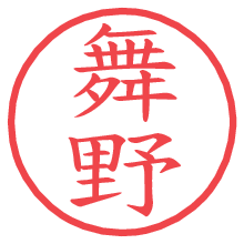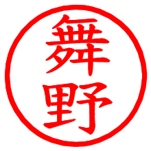 [朱肉の色]を選び、入力窓に“舞野”と入力して[生成]ボタンを押すと、印影が更新され、リンクから電子印鑑(デジタル印影)がダウンロードできます。 電子印鑑「舞野」の作り方文字表示が変なときや、文字バランスが悪いときは[字形切替]のチェックボックスでON/OFFを切り替え[生成]しなおしてください。 生成される画像は通常の印影「舞野.png」と、にじみを表現した少し太めの印影「舞野B.png」の背面透過PNG形式2種と、鮮明なPDF形式の印影「舞野.pdf」の計3種類です。 朱肉の微妙な色の違いを7色で表現しました。デフォルト(左端)は、JISが定めた朱肉の色のマンセル値(7.5R 5/14)をRGB値(217,66,54)に変換したものになっています。 「電子透かし」にチェックを入れて[生成]ボタンを押すと、タイムスタンプを電子透かしとして埋め込んだセキュアな電子印鑑が作れます。詳細は別ページの「タイムスタンプと電子透かし」でご覧ください。 舞野さんの日付印が作れます。「日付スタンプメーカー」は、社内向けの書類に利用されることの多い日付印(データ印)が無料で作れるWebアプリケーションです。中段に日付が入り、上段と下段は、ともに8文字まで文字が入ります。 ![]() 古代文字で落款印が作れます。「落款スタンプメーカー」で作品を引き立たせる落款印が作れます。