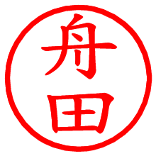 [朱肉の色]を選び、入力窓に“舟田”と入力して[生成]ボタンを押すと、印影が更新され、リンクから電子印鑑(デジタル印影)がダウンロードできます。 電子印鑑「舟田」の作り方文字表示が変なときや、文字バランスが悪いときは[字形切替]のチェックボックスでON/OFFを切り替え[生成]しなおしてください。 生成される画像は通常の印影「舟田.png」と、にじみを表現した少し太めの印影「舟田B.png」の背面透過PNG形式2種と、鮮明なPDF形式の印影「舟田.pdf」の計3種類です。 朱肉の微妙な色の違いを7色で表現しました。デフォルト(左端)は、JISが定めた朱肉の色のマンセル値(7.5R 5/14)をRGB値(217,66,54)に変換したものになっています。 「電子透かし」にチェックを入れて[生成]ボタンを押すと、タイムスタンプを電子透かしとして埋め込んだセキュアな電子印鑑が作れます。詳細は別ページの「タイムスタンプと電子透かし」でご覧ください。 舟田さんの日付印が作れます。「日付スタンプメーカー」は、社内向けの書類に利用されることの多い日付印(データ印)が無料で作れるWebアプリケーションです。中段に日付が入り、上段と下段は、ともに8文字まで文字が入ります。 ![]() 古代文字で落款印が作れます。「落款スタンプメーカー」で作品を引き立たせる落款印が作れます。