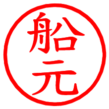 [朱肉の色]を選び、入力窓に“船元”と入力して[生成]ボタンを押すと、印影が更新され、リンクから電子印鑑(デジタル印影)がダウンロードできます。 電子印鑑「船元」の作り方文字表示が変なときや、文字バランスが悪いときは[字形切替]のチェックボックスでON/OFFを切り替え[生成]しなおしてください。 生成される画像は通常の印影「船元.png」と、にじみを表現した少し太めの印影「船元B.png」の背面透過PNG形式2種と、鮮明なPDF形式の印影「船元.pdf」の計3種類です。 朱肉の微妙な色の違いを7色で表現しました。デフォルト(左端)は、JISが定めた朱肉の色のマンセル値(7.5R 5/14)をRGB値(217,66,54)に変換したものになっています。 「電子透かし」にチェックを入れて[生成]ボタンを押すと、タイムスタンプを電子透かしとして埋め込んだセキュアな電子印鑑が作れます。詳細は別ページの「タイムスタンプと電子透かし」でご覧ください。 船元さんの日付印が作れます。「日付スタンプメーカー」は、社内向けの書類に利用されることの多い日付印(データ印)が無料で作れるWebアプリケーションです。中段に日付が入り、上段と下段は、ともに8文字まで文字が入ります。 ![]() 古代文字で落款印が作れます。「落款スタンプメーカー」で作品を引き立たせる落款印が作れます。