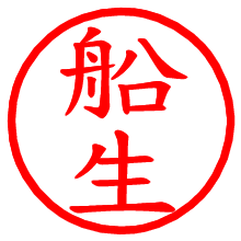 [朱肉の色]を選び、入力窓に“船生”と入力して[生成]ボタンを押すと、印影が更新され、リンクから電子印鑑(デジタル印影)がダウンロードできます。 電子印鑑「船生」の作り方文字表示が変なときや、文字バランスが悪いときは[字形切替]のチェックボックスでON/OFFを切り替え[生成]しなおしてください。 生成される画像は通常の印影「船生.png」と、にじみを表現した少し太めの印影「船生B.png」の背面透過PNG形式2種と、鮮明なPDF形式の印影「船生.pdf」の計3種類です。 朱肉の微妙な色の違いを7色で表現しました。デフォルト(左端)は、JISが定めた朱肉の色のマンセル値(7.5R 5/14)をRGB値(217,66,54)に変換したものになっています。 「電子透かし」にチェックを入れて[生成]ボタンを押すと、タイムスタンプを電子透かしとして埋め込んだセキュアな電子印鑑が作れます。詳細は別ページの「タイムスタンプと電子透かし」でご覧ください。 船生さんの日付印が作れます。「日付スタンプメーカー」は、社内向けの書類に利用されることの多い日付印(データ印)が無料で作れるWebアプリケーションです。中段に日付が入り、上段と下段は、ともに8文字まで文字が入ります。 ![]() 古代文字で落款印が作れます。「落款スタンプメーカー」で作品を引き立たせる落款印が作れます。