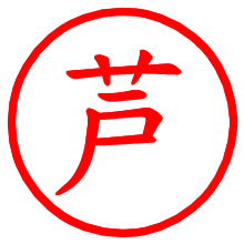 [朱肉の色]を選び、入力窓に“芦”と入力して[生成]ボタンを押すと、印影が更新され、リンクから電子印鑑(デジタル印影)がダウンロードできます。 電子印鑑「芦」の作り方文字表示が変なときや、文字バランスが悪いときは[字形切替]のチェックボックスでON/OFFを切り替え[生成]しなおしてください。 生成される画像は通常の印影「芦.png」と、にじみを表現した少し太めの印影「芦B.png」の背面透過PNG形式2種と、鮮明なPDF形式の印影「芦.pdf」の計3種類です。 朱肉の微妙な色の違いを7色で表現しました。デフォルト(左端)は、JISが定めた朱肉の色のマンセル値(7.5R 5/14)をRGB値(217,66,54)に変換したものになっています。 「電子透かし」にチェックを入れて[生成]ボタンを押すと、タイムスタンプを電子透かしとして埋め込んだセキュアな電子印鑑が作れます。詳細は別ページの「タイムスタンプと電子透かし」でご覧ください。 芦さんの日付印が作れます。「日付スタンプメーカー」は、社内向けの書類に利用されることの多い日付印(データ印)が無料で作れるWebアプリケーションです。中段に日付が入り、上段と下段は、ともに8文字まで文字が入ります。 ![]() 古代文字で落款印が作れます。「落款スタンプメーカー」で作品を引き立たせる落款印が作れます。