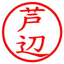 [朱肉の色]を選び、入力窓に“芦辺”と入力して[生成]ボタンを押すと、印影が更新され、リンクから電子印鑑(デジタル印影)がダウンロードできます。 電子印鑑「芦辺」の作り方文字表示が変なときや、文字バランスが悪いときは[字形切替]のチェックボックスでON/OFFを切り替え[生成]しなおしてください。 生成される画像は通常の印影「芦辺.png」と、にじみを表現した少し太めの印影「芦辺B.png」の背面透過PNG形式2種と、鮮明なPDF形式の印影「芦辺.pdf」の計3種類です。 朱肉の微妙な色の違いを7色で表現しました。デフォルト(左端)は、JISが定めた朱肉の色のマンセル値(7.5R 5/14)をRGB値(217,66,54)に変換したものになっています。 「電子透かし」にチェックを入れて[生成]ボタンを押すと、タイムスタンプを電子透かしとして埋め込んだセキュアな電子印鑑が作れます。詳細は別ページの「タイムスタンプと電子透かし」でご覧ください。 芦辺さんの日付印が作れます。「日付スタンプメーカー」は、社内向けの書類に利用されることの多い日付印(データ印)が無料で作れるWebアプリケーションです。中段に日付が入り、上段と下段は、ともに8文字まで文字が入ります。 ![]() 古代文字で落款印が作れます。「落款スタンプメーカー」で作品を引き立たせる落款印が作れます。